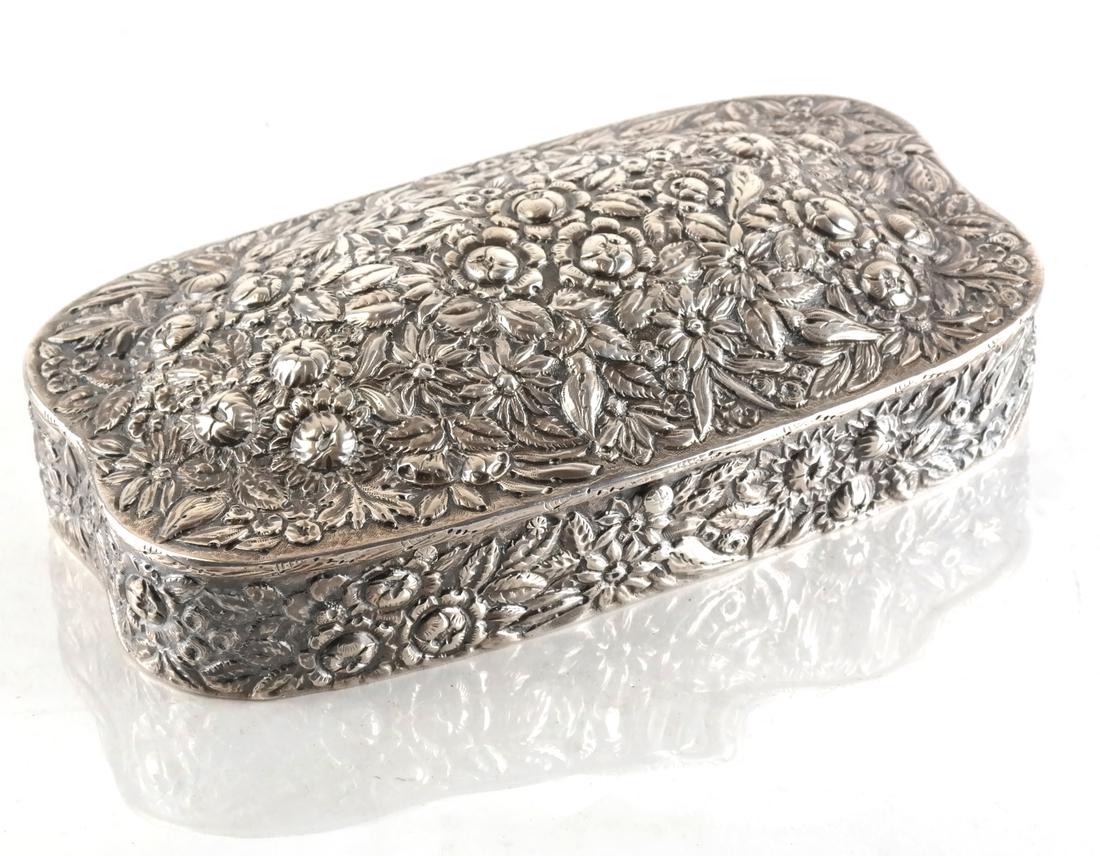 Handmade 925 Sterling Silver Floral Repousse Esrog Box 5.5 x 6.25 InchesFeb 06, 2026Sterling Silver Repousse BoxFeb 08, 202680% SILVER CARVED FLORAL REPOUSSE DISHFeb 15, 2026Gorham Sterling Silver Besamim Holder Repousse Box AntiqueFeb 07, 2026Bailey Banks & Riddle Antique 925 Sterling Silver Repousse Floral TrayFeb 07, 2026Antique Gorham 925 Sterling Silver Handmade Repousse Besamim Holder4 days LeftAmerican Silver Repousse Vegetable Dish and Cover15 hrs LeftA Sterling Silver Repousse Snuff Box4 days LeftArt Nouveau Shreve & Co Sterling Silver Box with Crown and Floral DesignFeb 06, 2026Tiffany & Co. Silver-Soldered Stamp Box and Cover.Feb 08, 2026AN ORNATE HAND CHASED STERLING SILVER ETROG BOX. Portugal, c. 1990Feb 18, 2026Rare Art Nouveau 800 Sterling Silver Box by M & K Germany3 days LeftTHAI REPOUSSÉ STERLING SILVER HUMIDOR BOX 685 GRAMSFeb 08, 2026Gorham 1903 Sterling Silver Soap Box with Repousse Floral Design4 days LeftChinese Export Silver Box3 days LeftA Vintage Silver-Tone Footed Floral Trinket BoxFeb 15, 2026