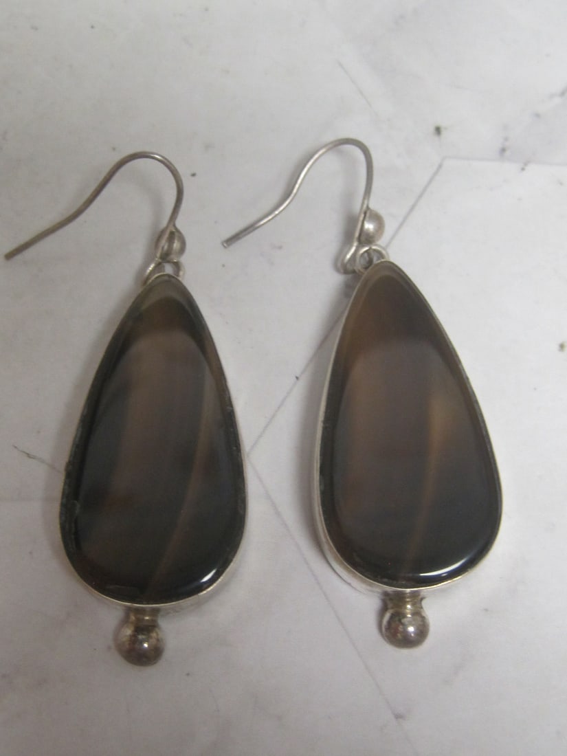 SoldSet of Two Black Agate Sterling Silver EarringsProduct Details Item: Earrings Metal: Sterling Silver Gemstone: Earring Set 1: Black Agate & White Topaz Earring Set 2: Black Agate Approximate Measurements: Earring Set 1: 65.1 mm X 10.8mm Earring SeSee Sold Price
