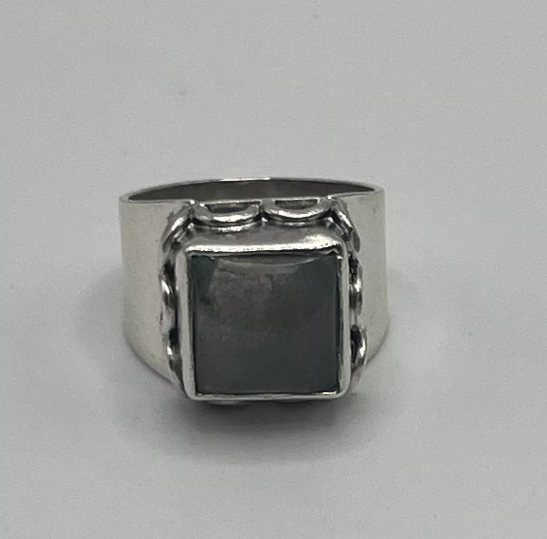 SoldVINTAGE SOUTHWESTERN STERLING SILVER TURQUOISE RING SIZE 5.5VINTAGE STERLING SILVER TURQUOISE RING Vintage Southwestern Turquoise sterling silver ring Size 5.5 Ring Measures 1.15" wide on top Vintage, Pre-owned, in good condition for its age, minor wear, pleasSee Sold Price