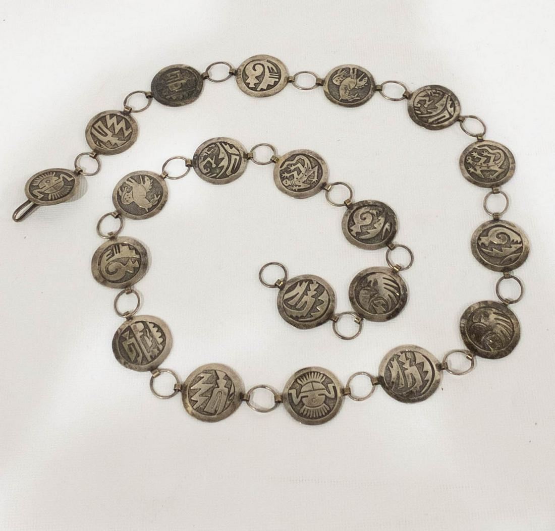 Sterling Silver Aztec Designed Medallion Belt