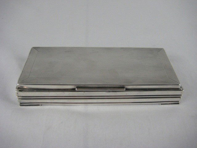 Lot of Silver Items.Mar 10, 2026Vintage Silver Plate Jewelry BoxMar 10, 2026Sterling Silver Hinged Box with Wood Liner (2"h x 5 1/2"w x 3 5/8"d, has some dents) AND SterlingMar 10, 2026Poole Sterling Silver Cigarette/Cigar Box6 days LeftSilverplated Dresser Box3 days LeftEnglish Art Deco sterling silver cigar/cigarette box by MAPPIN & WEBBMar 15, 2026Elizabeth II Sterling Silver Cigar Box,Mar 13, 2026Asprey Sterling Silver Engine Turned Cigarette or Cigar Box 1955Mar 15, 2026A large Art Deco sterling silver cigar boxMar 15, 2026Mirror Metal BoxMar 08, 2026Sterling Silver Octagonal TrayMar 08, 2026George V Sterling Silver and Glass Sardine BoxMar 16, 2026Dominick & Haff Sterling Silver Tray6 days LeftGerman Art Deco Sterling Silver& Mahogany Cigar Box by DunhillMar 20, 2026ANTIQUE STERLING SILVER PLATED TRINKET CIGAR BOXMar 09, 2026Art Nouveau 925 Sterling Silver BoxMar 11, 2026
