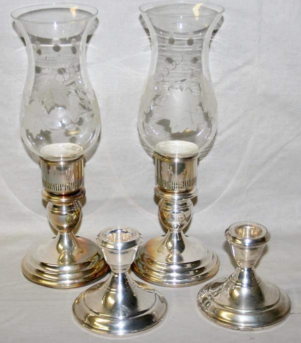 STERLING SILVER CANDLESTICKS W/ETCHED GLOBES,