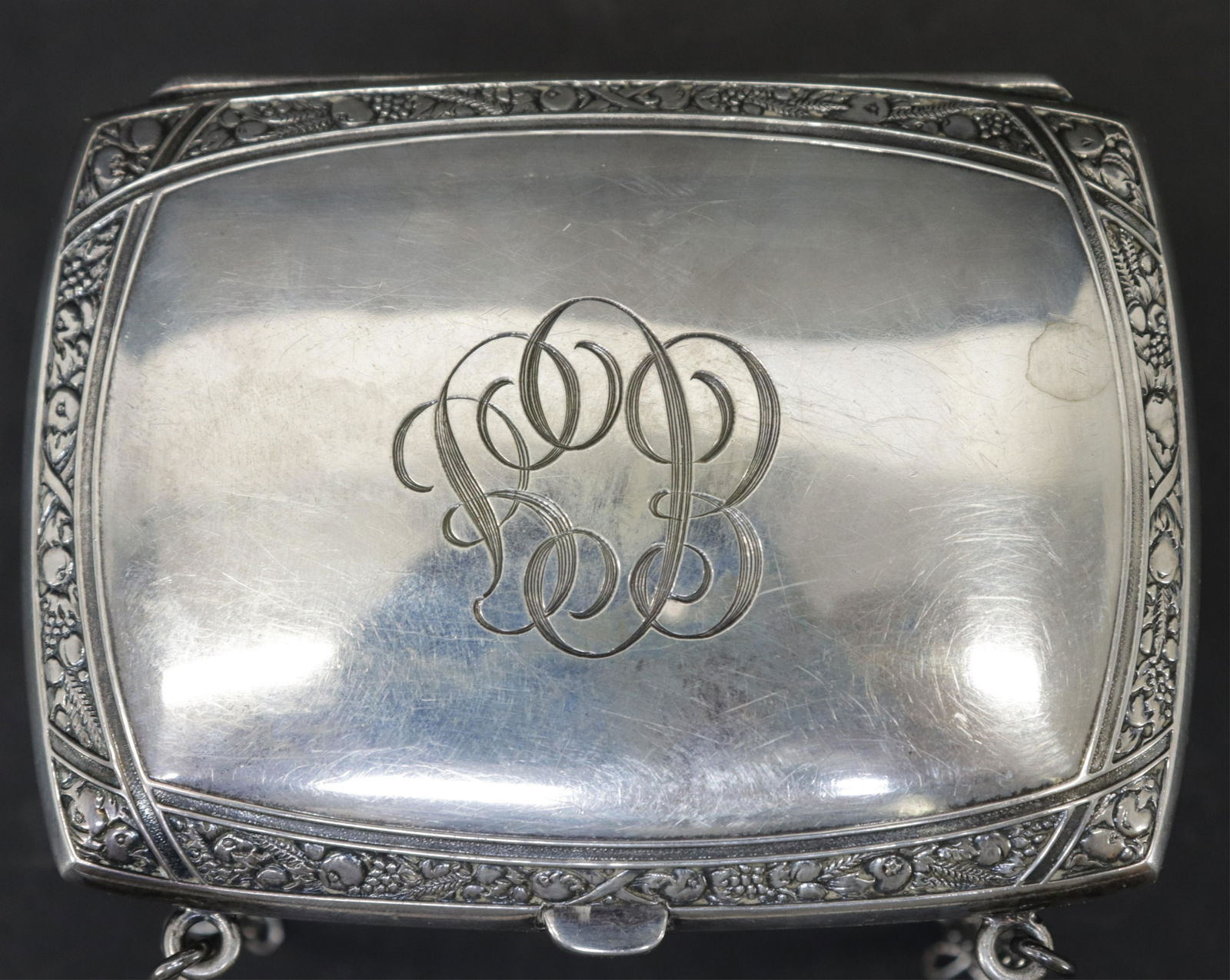 Vintage Silver Plate Jewelry BoxMar 10, 2026Dominick & Haff Sterling Silver TrayMar 07, 2026Set of 6 sterling silver dishes for Shreve Crump & Low. Monogrammed. 6.25in diameter. 22.9 ozt totalMar 01, 2026Gorham Saint Cloud Sterling Silver Desk Caddy 10 1/2 x 6 3/43 days LeftSterling Silver Chatelaine Coin case Samuel M Levi 19046 days LeftRussian Silver Cigarette CaseMar 03, 2026Tiffany & Co Blackberry Sterling Silver Nut Cup Monogrammed JMar 03, 2026Judaica Sterling Silver Box2 days LeftAntique Art Nouveau Sterling Silver Compact/Coin PurseFeb 28, 2026K Uyeda Signed Japanese Sterling Silver Cigarette CaseMar 01, 2026Antique Art Nouveau Sterling Silver Compact/Coin PurseFeb 28, 2026Gorham Domestic Sterling Silver Crumber 12 1/4 Inch Monogrammed4 days LeftSterling Silver Tray, Brand-Chatillon Co., 26 InchFeb 27, 2026Chrysanthemum Sterling Silver Bread Tray 14 x 10.25 23 ozt Monogrammed2 days LeftA SILVER AMULET. Probably Iraq or Morocco, c. 1900.2 days LeftA Russian 84 Silver Cigarette Box4 days Left