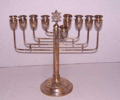 SoldAmazing Sterling Silver Hanukkah Lamp Menorah.Amazing Sterling Silver Hanukkah Lamp Menorah. With Engraved floral and swags ornaments. Stepped, wide and impressive base with four recumbent lion shaped supports. Including an oil jug and servant liSee Sold Price