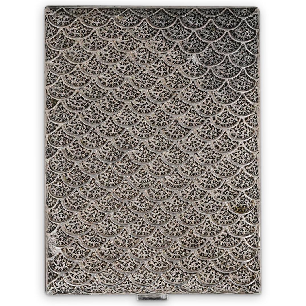 Sterling Silver Cigarette Case w/ Filigree Pattern