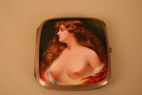 STERLING SILVER CIGARETTE CASE W/ENAMELED LID SHOWI