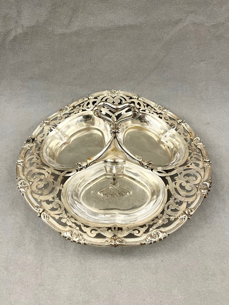 STERLING SILVER COMPARTMENTED SERVING DISH. early 20th century.