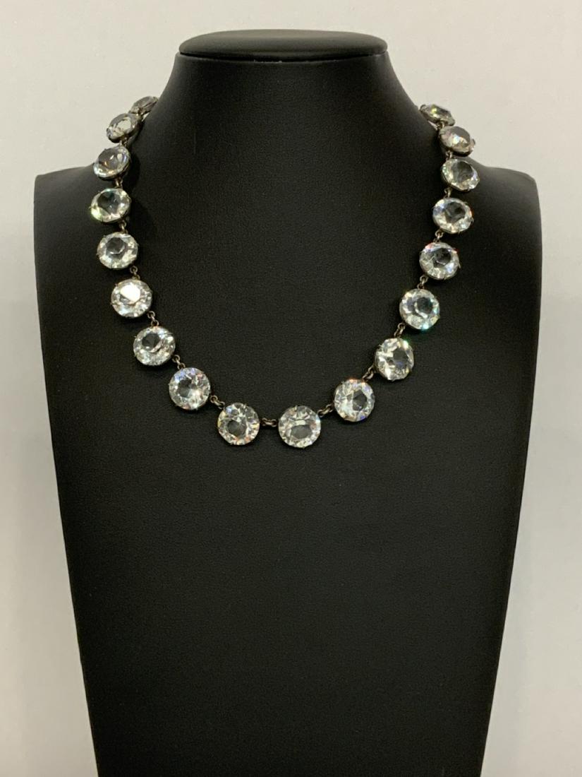 SoldVintage Art Deco Sterling Silver Crystal Bead NecklaceVintage Art Deco Crystal Bead and Sterling Silver Necklace. This is a spectacular vintage Art Deco necklace. It has large, dazzling crystal faceted beads in graduated sizes that are strung on sterlingSee Sold Price