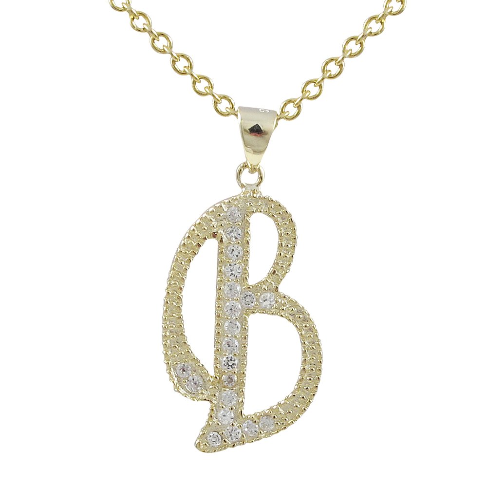 Sterling Silver CZ B Initial - Gold/White
