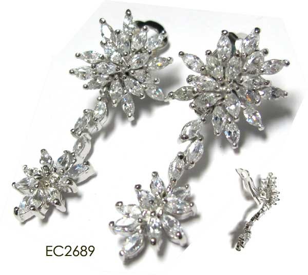 Sterling Silver-CZ clip dangling ear