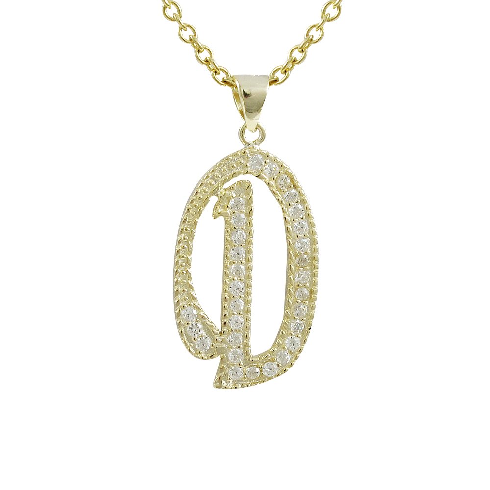 Sterling Silver CZ D Initial - Gold/White
