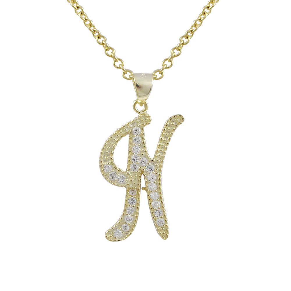Sterling Silver CZ N Initial - Gold/White