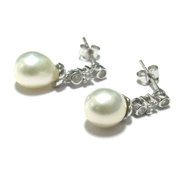 Sterling Silver-CZ Pearl Post earr