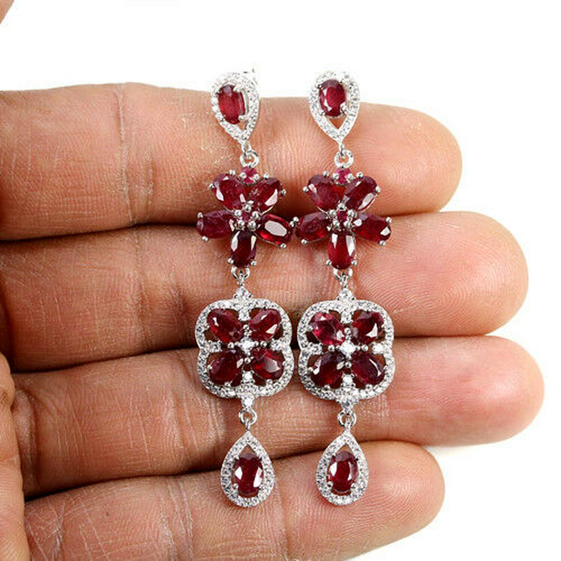 18KT GORGEOUS 6CT NATURAL RUBY DIAMOND FLORAL EARRINGS