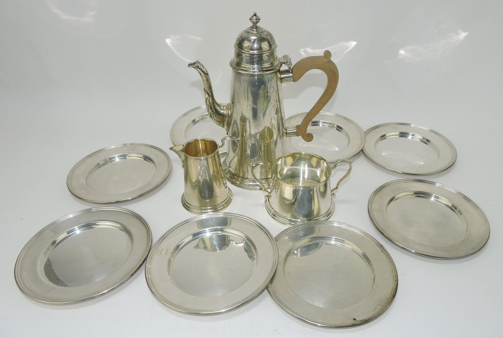 Silverplated Teapots, Cream and Sugar5 days LeftSTERLING SILVER NUT DISHES LOT7 days LeftSTERLING SILVER LOT- TOTAL OF 9 PCS.Feb 24, 2026Vintage WM A Rogers Silverplated Tea Pot & CreamerFeb 25, 2026Vintage Crescent Silverplated Creamer And Sugar BowlFeb 25, 2026Sterling Silver Teacup sets "Russian"Mar 27, 20268 Sterling Silver Fisher Punch Cups10 hrs Left10 Sterling Silver Bread and Butter Plates5 days LeftSet of 6 sterling silver dishes for Shreve Crump & Low. Monogrammed. 6.25in diameter. 22.9 ozt totalMar 01, 2026Silver Plated Tea Service Grouping (6)Mar 07, 20265 pieces of sterling silver tableware. Largest 9in. 25.4 ozt total weight.Mar 01, 2026(6) Sterling Silver Serving PiecesFeb 24, 2026Group of PewterFeb 24, 2026ANTIQUE ENGLISH STERLING SILVER CHOCOLATE POT6 days LeftFour Piece Silverplated Sheffield English Teaset WithFeb 26, 2026GROUP OF SILVER ITEMS, 218gFeb 25, 2026