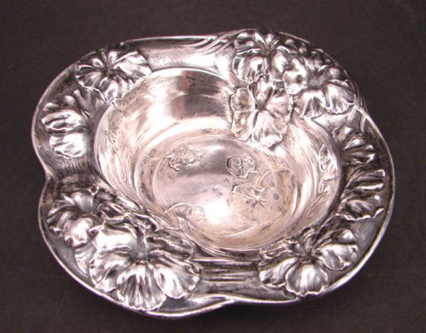 Sterling Silver Dish with flower and leaf design.