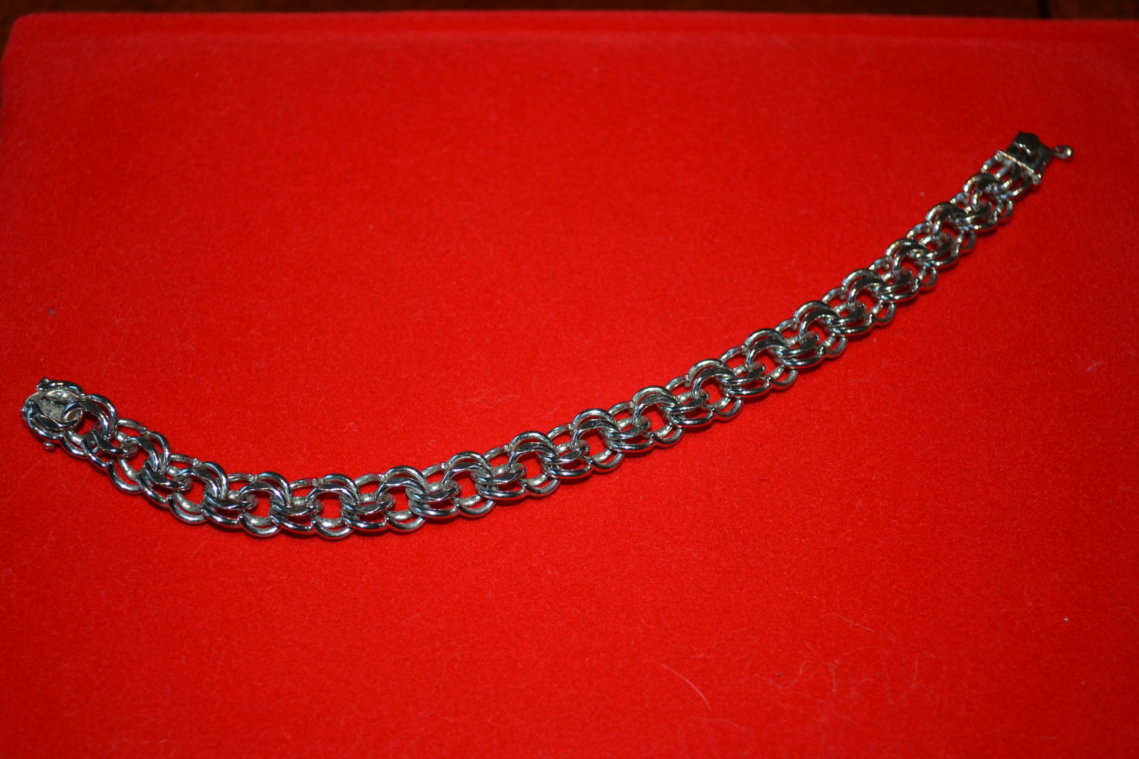 Sterling Silver Double Link Charm Bracelet 7" 1970