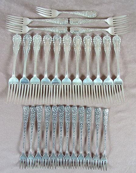 Estate lot STERLING SILVER including large fish knife, other serving utensils, souvenir spoons,6 days LeftLot sterling silver flatware, Fine Arts Sterling, "Processional"59 troy plus 8 knives2 days LeftLot silver flatware, marked sterling, has a coin silver design look, 40 troy plus 7 handles.2 days LeftEstate GORHAM & REED & BARTON Sterling Silver flatware ( very fancy similar patterns ), lot to6 days LeftWallace Grande Baroque Sterling Silver Flatware Service for 12, 86.5 t oz 72 PCSFeb 19, 2026Towle Old Master Sterling Silver FlatwareFeb 08, 2026S. Kirk & Son Sterling Silver Old Maryland Pattern Flatware SetFeb 08, 2026AN ASSEMBLED SET OF STERLING SILVER FLATWARE BY STEIFF.3 days Left82 Piece Gorham Sterling "Covington" Flatware SetFeb 21, 2026SILVER ROSEPOINT FLATWARE SET FOR 18, 3430g4 days LeftDominick & Haff Sterling Silver Flatware, 8 Pcs.5 days Left20 piece of sterling flatware 17.18 ozt plus 11 weighted. 11 knives, 9 forks. Estate fresh. J.S. &12 hrs LeftFrench Silver Plate "Rubans" Flatware Service x 12Mar 12, 2026Miscellaneous Group of Seventeen American Sterling Silver Flatware.Feb 08, 2026American Sterling Silver Sixty-Six Piece Flatware ServiceFeb 08, 2026BIRKS REGENCY SILVERPLATE FLATWARE3 days Left