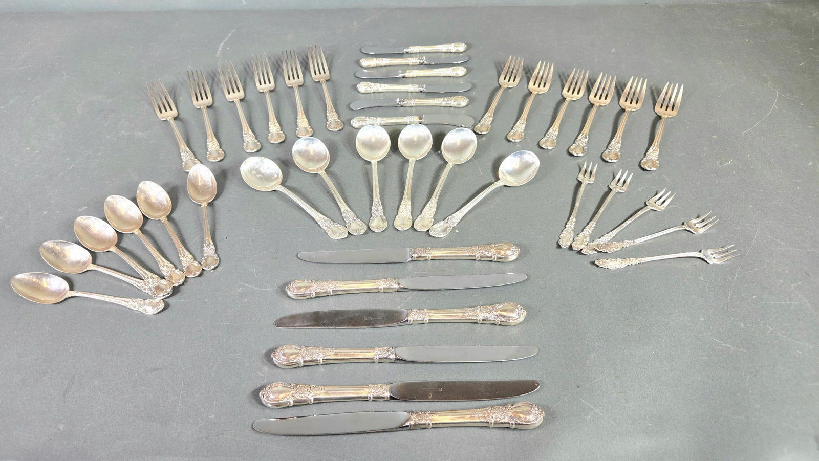 FRANCIS HIGGINS STERLING SILVER UTENSILS LOT OF 613 hrs LeftLunt Sterling Silver Flatware SetMar 20, 2026Sterling Silver Flatware Service.6 days LeftTowle "Old Master" Sterling Silver Flatware Partial Service for 8Mar 19, 2026Lunt "Delacourt" Sterling Silver Flatware Partial Service for 12Mar 19, 2026Sterling Silver FlatwareMar 20, 2026Gorham “Old English Tipt" Sterling Silver Flatware Service for Eight, 1145gMar 15, 2026Group of English Sterling Silver FlatwareMar 16, 2026(8) STERLING SILVER SERVING PIECESMar 15, 2026International / Fine Arts "Processional" Sterling Silver Flatware Service for 10 With ExtrasMar 19, 2026International Sterling Silver "Wild Rose" Flatware 686 GramsMar 28, 2026Reed and Barton "Dancing Flowers" Sterling Silver Flatware Partial Service for 18Mar 19, 202647 pc Sterling Silver Flatware Set LuntMar 22, 2026Assembled Set of American Sterling Silver King's Pattern FlatwareMar 19, 2026Group of Sterling Silver Flatware PiecesMar 28, 2026Collection of Silver Plated Assorted Flatware5 days Left