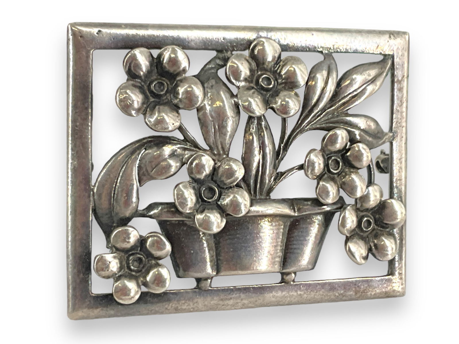 Womens Vintage Estate Sterling Silver Floral Brooch
