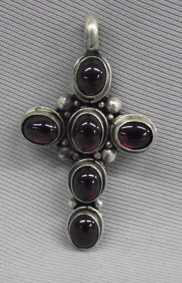 Sterling Silver Garnet Cross Pendant