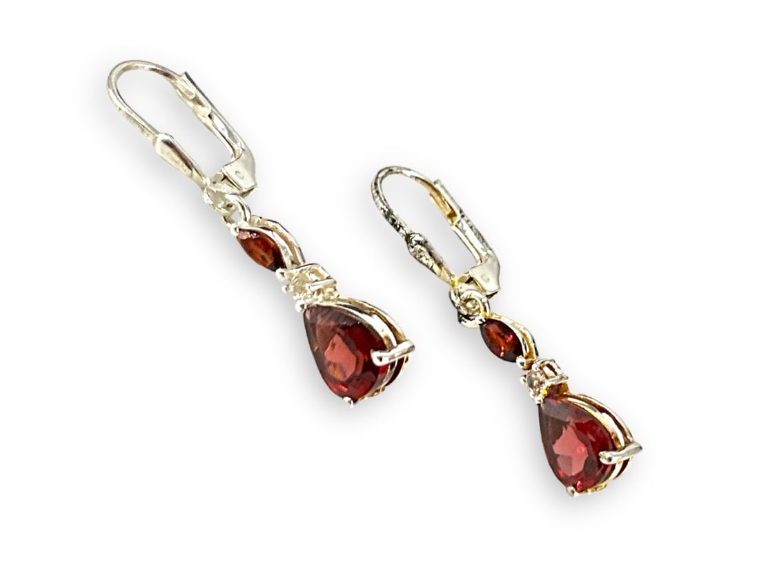 Sterling Silver Garnet Dangle Earrings