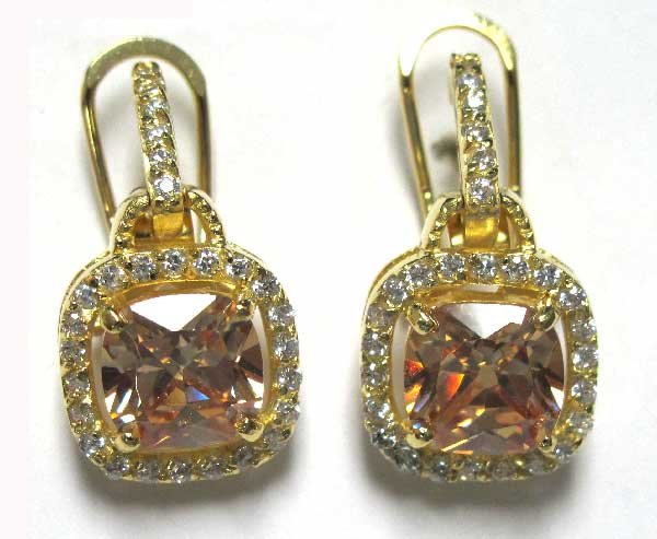 Sterling Silver-GD-CZ square earring