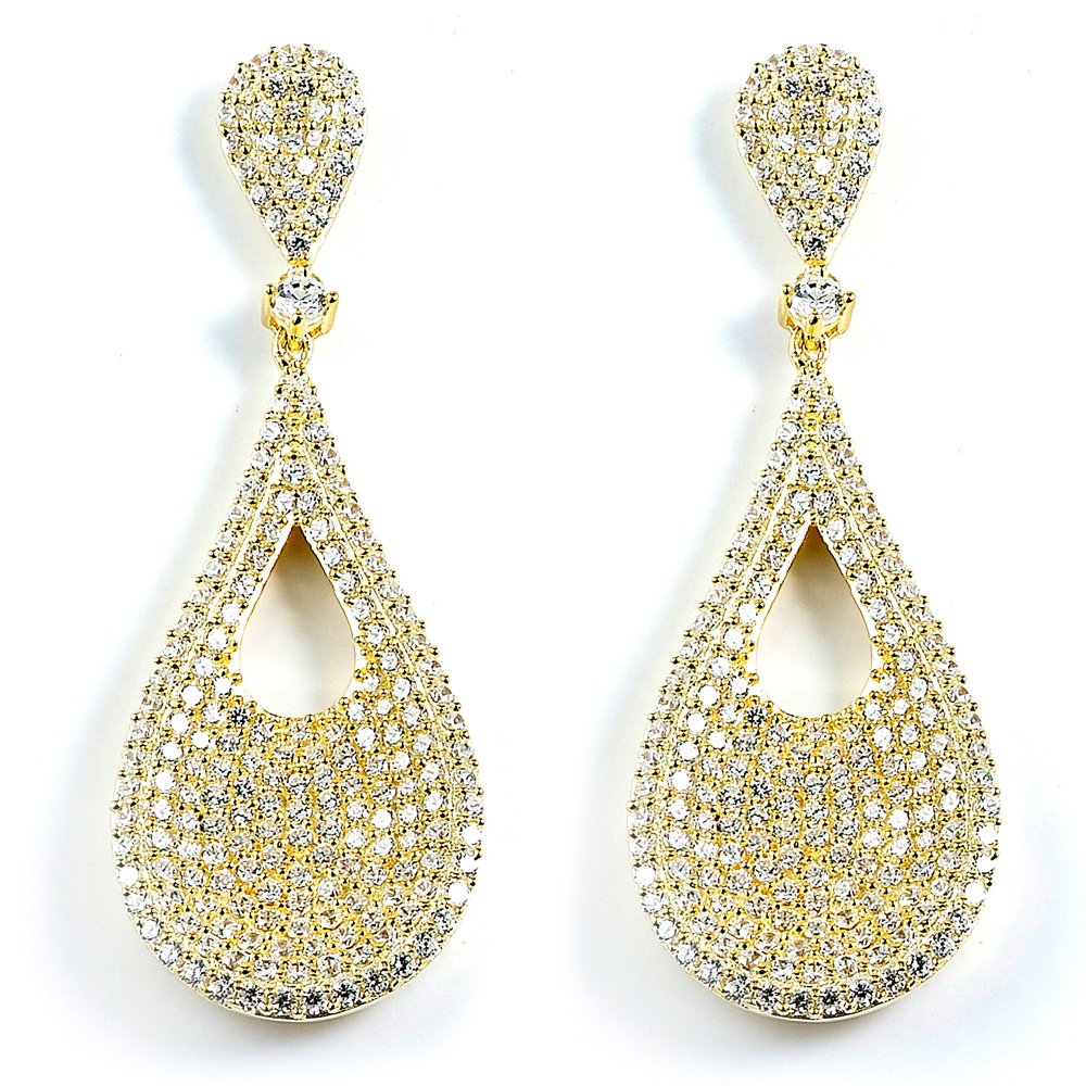 Sterling Silver Gold Plated and CZ Pear Shape Dangle Ea