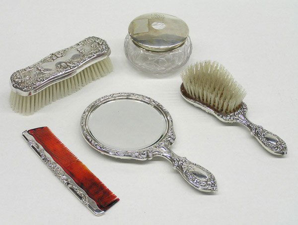 Lot of silver cutlery113 Lots AwayLot of Sterling Silver Rimmed and Topped ItemsFeb 12, 2026FRANCIS HIGGINS STERLING SILVER UTENSILS LOT OF 6Feb 15, 2026Estate GORHAM & REED & BARTON Sterling Silver flatware ( very fancy similar patterns ), lot to4 days LeftEstate lot silverplate etc. to include sterling rim serving plate, (4) cut glass & sterling rim4 days LeftGORHAM STERLING SILVER FLATWARE (8) NEVER OPENEDFeb 15, 2026Group of Vintage Sterling Dresser Items3 days LeftGroup of Silver Dressing Table Items, Variously Engraved with Whitney MonogramsFeb 11, 2026Whiting Dresden Sterling Silver 8pc Vanity Dresser Set Monogrammed3 days LeftGROUP OF SILVER AND CUT GLASS DESK ITEMS17 hrs LeftSterling Silver & Guilloche Enamel Dresser Set, (12) Piece Set, Silver Marked Sterling5 days LeftGroup of Mappin and Webb Sterling Silver Vanity Set3 days LeftTiffany Et A. Group of Silver Vanity Items, 235 days LeftAN ANTIQUE SILVER DRESSING TABLE SET. 665 grams overall. (5)Feb 10, 2026(4) Solid Silver Vanity Items5 days LeftGorham Sterling Silver Mirror and Brush Set Antique Vintage Vanity Collectibles21 hrs Left