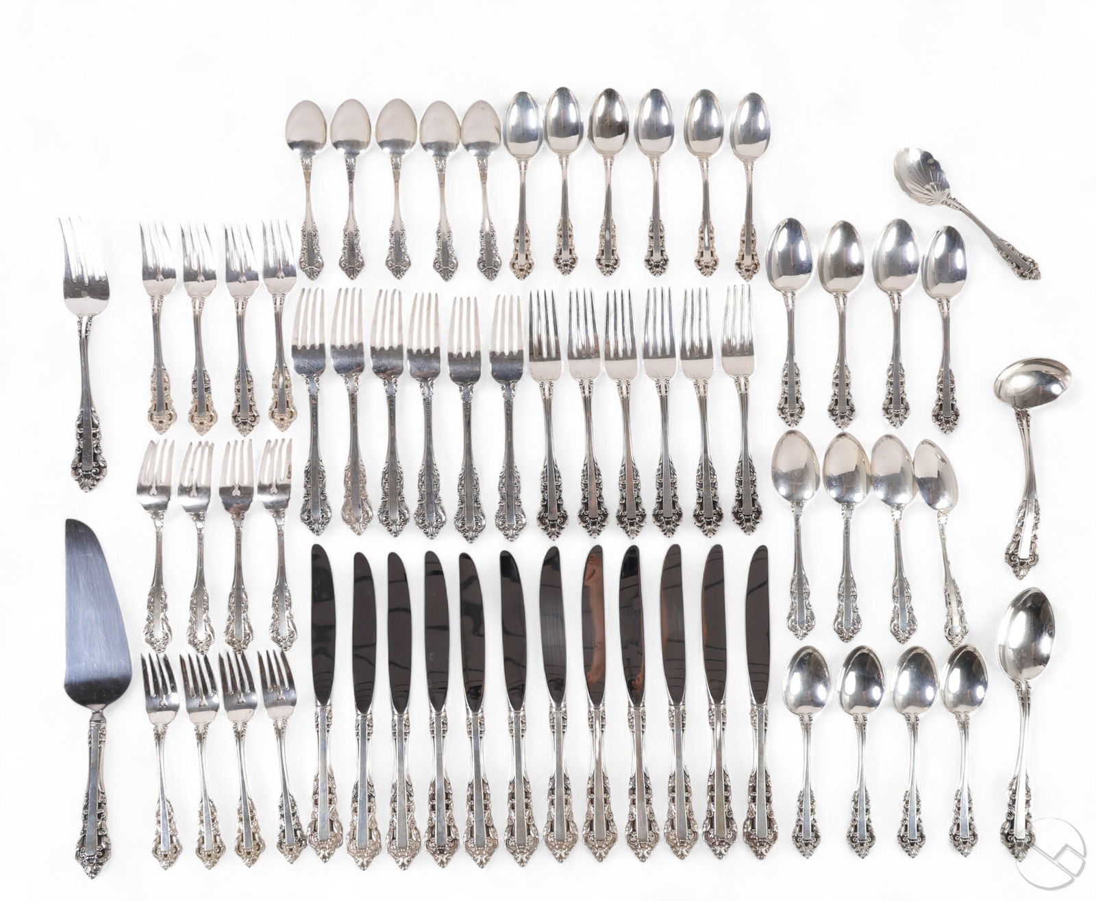 120+ Pc Lot Sterling Flatware, Rogers & Gorham5 days LeftFRANCIS HIGGINS STERLING SILVER UTENSILS LOT OF 6Mar 08, 2026Large lot of sterling silver and silver handled utensils. To include: Durgin serving fork and spoonMar 01, 2026Towle Sterling Silver Flatware ServiceFeb 28, 2026(103) AMERICAN LUNT 'MARY II' STERLING SILVER FLATWARE SERVICE6 days LeftSeventy two English spoons with Others4 days LeftREED & BARTON "Mirrorstele" Sterling Silver Flatware, Service for 106 days LeftSterling Silver Flatware Service, Damask Rose PatternFeb 28, 2026Gorham Sterling "Etruscan" Flatware ServiceFeb 26, 202671-Piece Sterling Silver .925 Flatware SetArt Deco Sterling Silver Flatware Partial Service, Chased Romantique By AlvinFeb 28, 2026Stieff Sterling "Puritan" Flatware ServiceFeb 26, 2026Towle Old Lace Sterling Silver Flatware ServiceFeb 28, 2026Towle "Louis XIV" sterling flatware service.Feb 24, 2026Lunt Monticello pattern sterling silver flatware and serving pieces, 25pc., 19.482ozt. 10"Long x 15 days LeftAmerican Sterling Flatware ServiceFeb 26, 2026