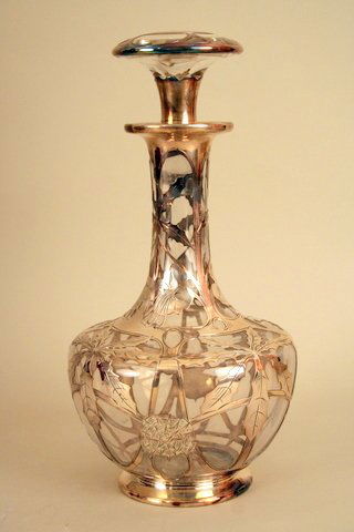STERLING SILVER HEAVY OVERLAY DECANTER W/STOPPER,