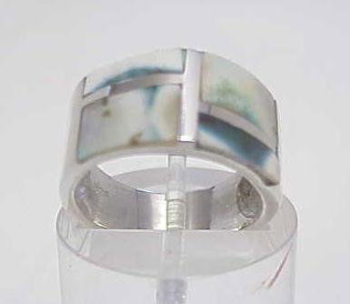 STERLING SILVER INLAYED MOP BAND RING SIZE 8