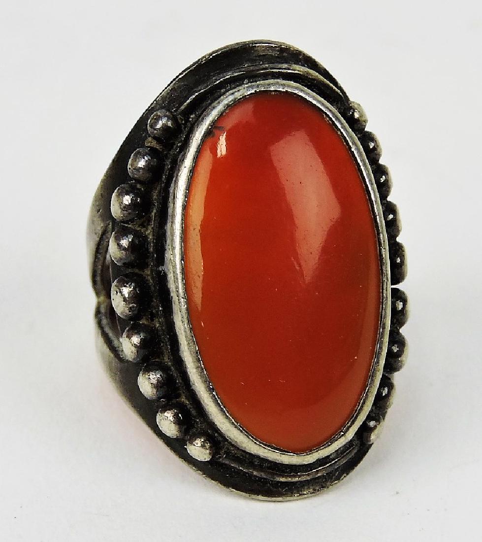 VINTAGE BEAUTIFUL NAVAJO STERLING SILVER CORAL RING