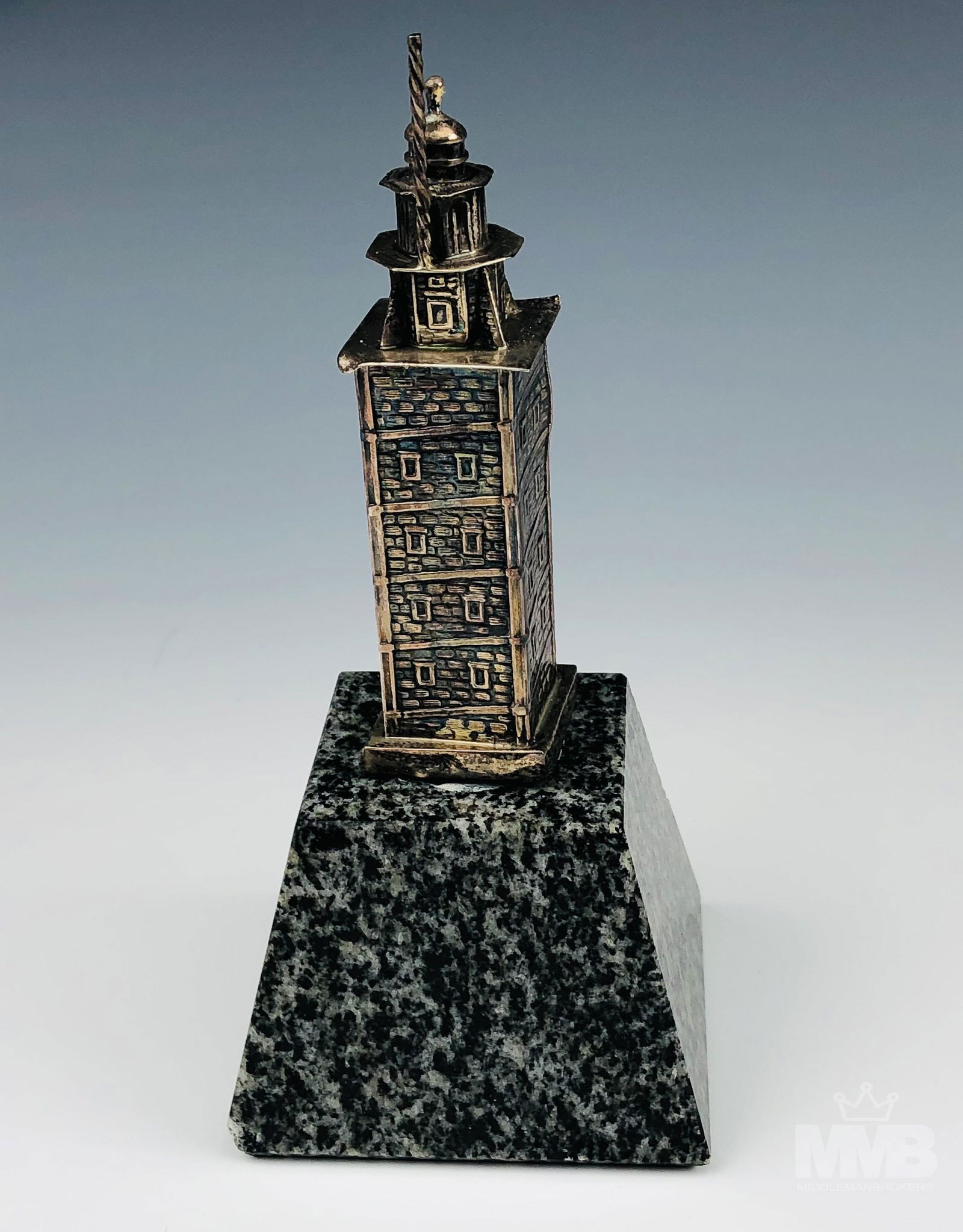 Sterling Silver Lighthouse Sculpture Marble Base