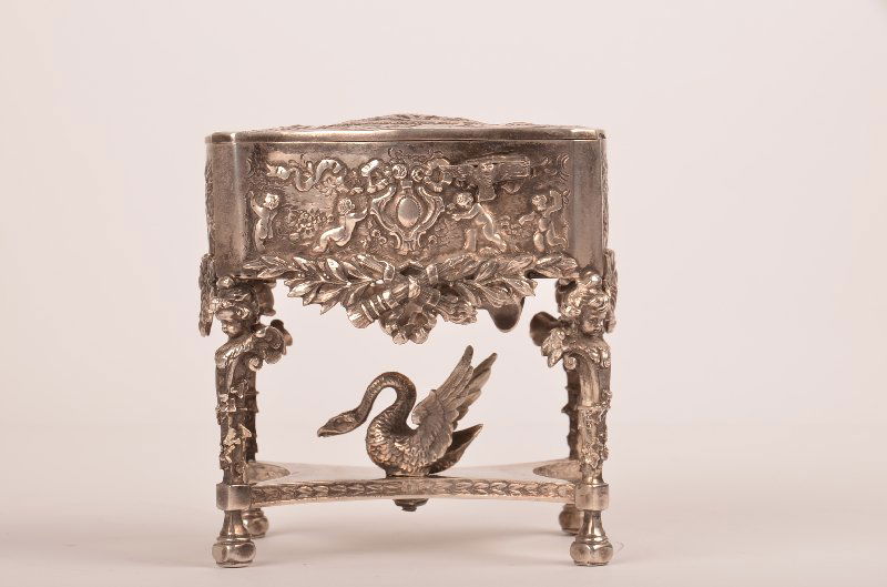 Sterling silver mechanical singing bird box with a