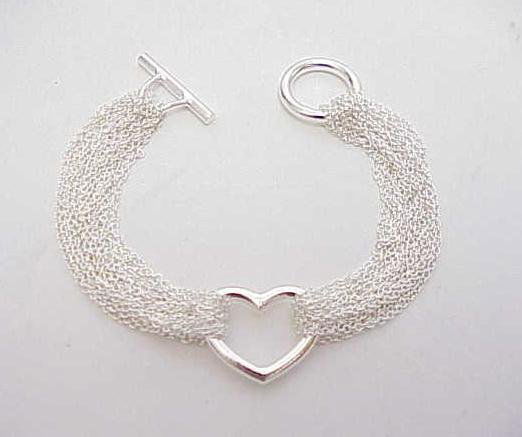 STERLING SILVER MESH HEART BRACELET TOGGLE 8 IN