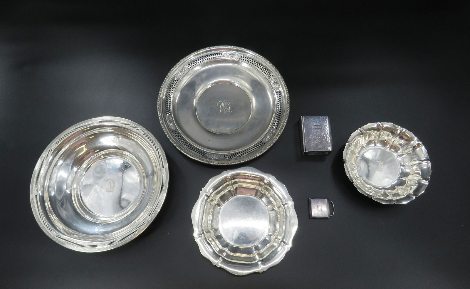 Lot of 5 Lalique Crystal Items - Bowls, Nude, etc.Mar 21, 2026Sterling silver tableware lot including a monogrammed oval tray marked ‘Sterling 497 M,’ anMar 27, 2026LOT STERLING SILVER TABLE ITEMSMar 22, 2026CHRISTOFLE GALLIA SILVER PLATE MIXED LOT VINTAGE HOLLOWWAREMar 21, 20263 STERLING SERVING PIECES INCL. TIFFANYMar 22, 2026Nine Asst Vintage Silverplated Small Plates8 hrs LeftVintage Silver Plated Bowl Cup Butter Plate And Glass Champagne GlassMar 23, 2026STERLING SILVER (3) bowls, (2) GORHAM & (1) INTERNATIONAL, all in fine estate condition, theyApr 10, 2026STERLING SILVER (5) pcs. of small dishes and serving bowl from fine estate in Hudson Valley. In niceApr 10, 2026A Group of Ten Goldplated/Silverplated Service Ware1 hr LeftGROUP OF STERLING PLATES & BOWLSMar 22, 2026Sterling Silver Salts, Dishes etc.5 days LeftHoward & Co. Silver Waiter, Silver Plate Salver and a Silver Plate DishMar 25, 202612 Sterling Silver Art Nouveau Nut DishesMar 27, 2026Group of Sterling Silver TablewareMar 25, 2026Group of Sterling Silver TablewareMar 25, 2026