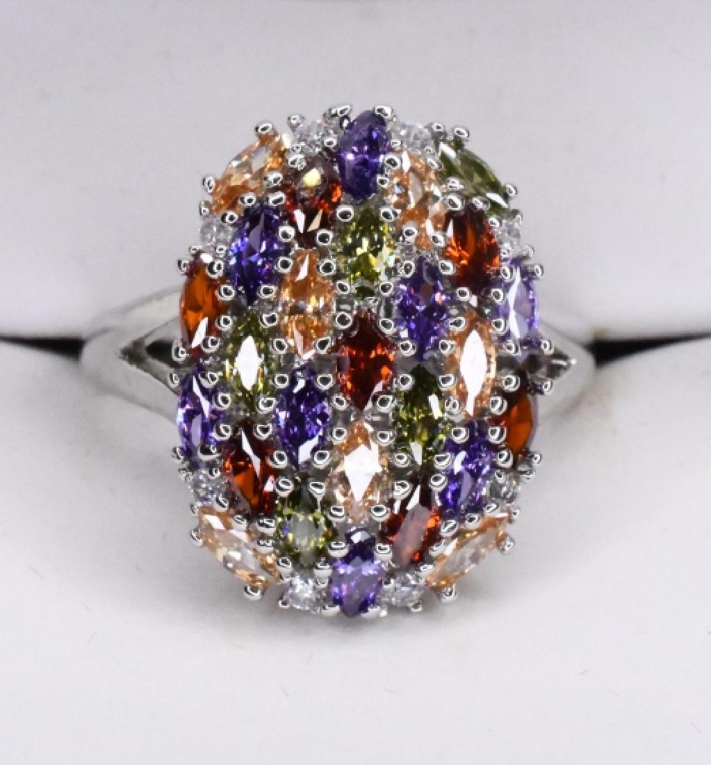 MULTI GEMSTONE RING STERLING SILVER SIZE 9