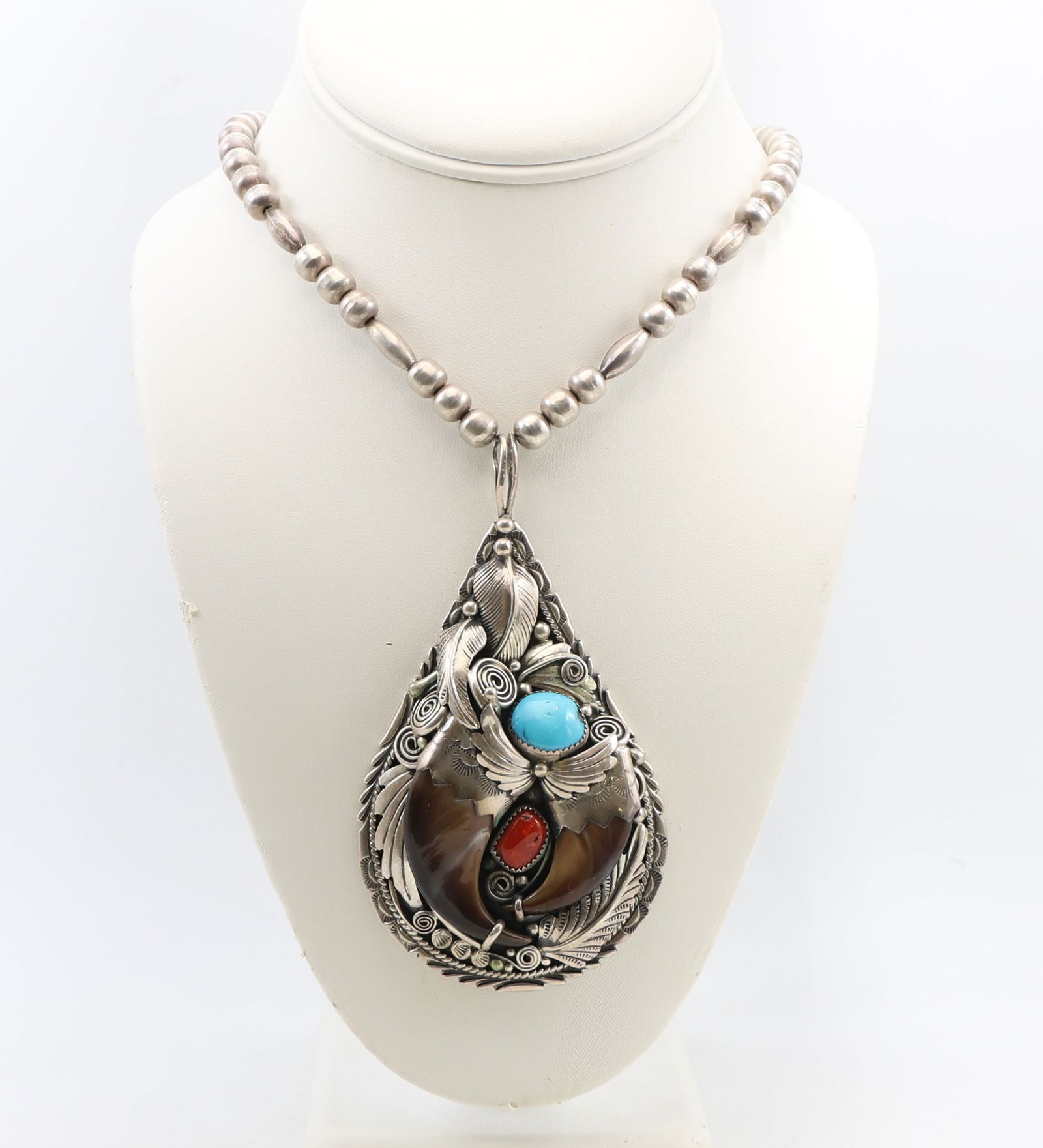 Sterling Ray Begay Signed Turquoise Coral & Bear Claw PendantKraft Auction Service4.4(843)$80(3 bids)3 days Left