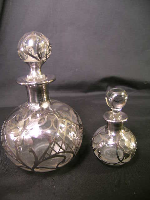 STERLING SILVER OVERLAY CRYSTAL PERFUMES 2 PC