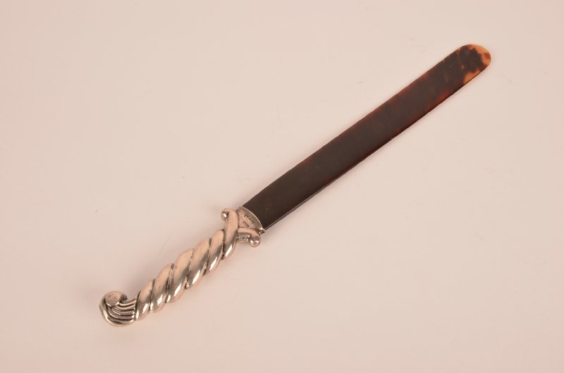 SoldVictorian Era Silver Mounted Page TurnerVictorian era silver mounted page turner featuring English sterling silver detail, marked height 17.5 in. x 2 in width. x depth 1.5 in. Shipping available for this lot through our partner 4CL; pleasSee Sold Price