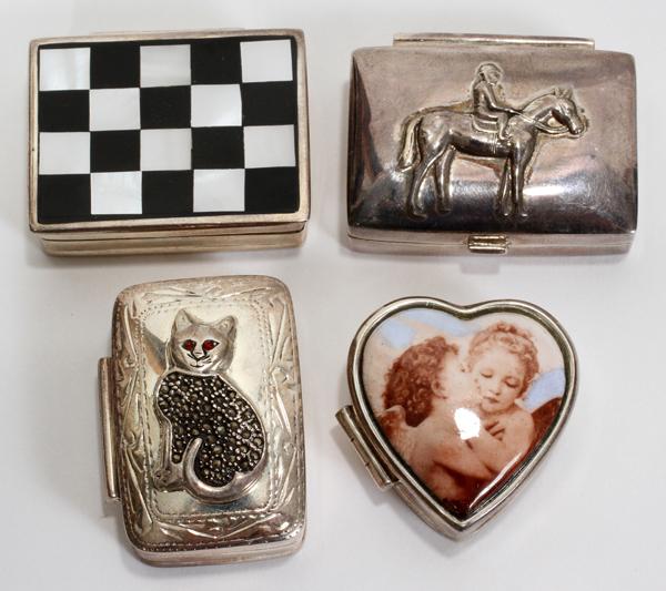 Lot of Assorted Sterling Silver Jewelry4 days LeftVintage Silver Tone Unsigned Grape Vine Teddy Bear Carousel Horse Brooch Pin Lot Of 4Mar 19, 2026DUTCH AND ENGLISH BRASS TOBACCO BOXES, LOT OF FOUR5 days Left14 Porcelain, Wood, Musical, Glass & Inlaid BoxesMar 12, 2026Jay Strongwater Style Jeweled Trinket Boxes 4pcsMar 12, 2026Vintage Sterling Silver Lady And Equestrian Boot Pin BroochsMar 23, 2026Sterling Silver Scent Bottles & PillboxMar 17, 20265 Miniature Silver BoxesMar 14, 2026STERLING SILVER MATCH SAFES / PILL BOXMar 15, 20265 Miniature Silver BoxesMar 14, 20264 Miniature Silver BoxesMar 14, 20264 Snuff BoxesMar 14, 2026Four Baroque style sterling silver vanity boxes2 days LeftVintage Group of Trinket Boxes and Solid Perfume Compacts4 days LeftCollection - 15 miniature boxes / pillboxes - including silver,Mar 13, 20265 Miniature Silver BoxesMar 14, 2026