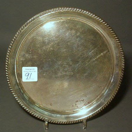 Sterling silver presentation tray inscribed "M.L.B.
