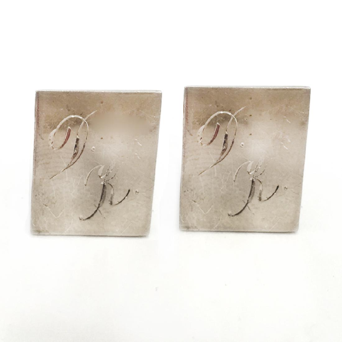 Sterling silver rectangular ear clips with engraved
