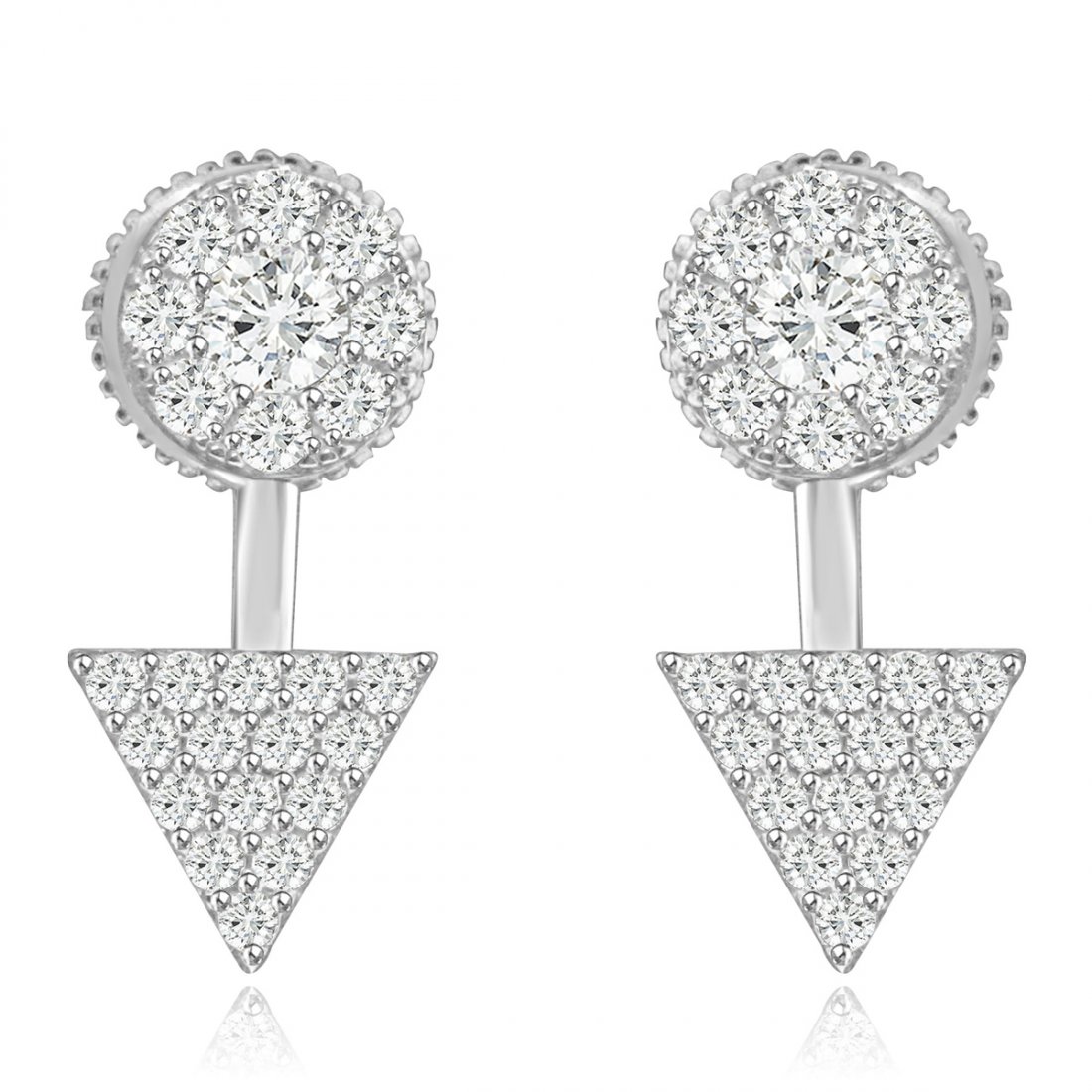 Sterling Silver Rhodium Plated with CZ Two Piece Stud E