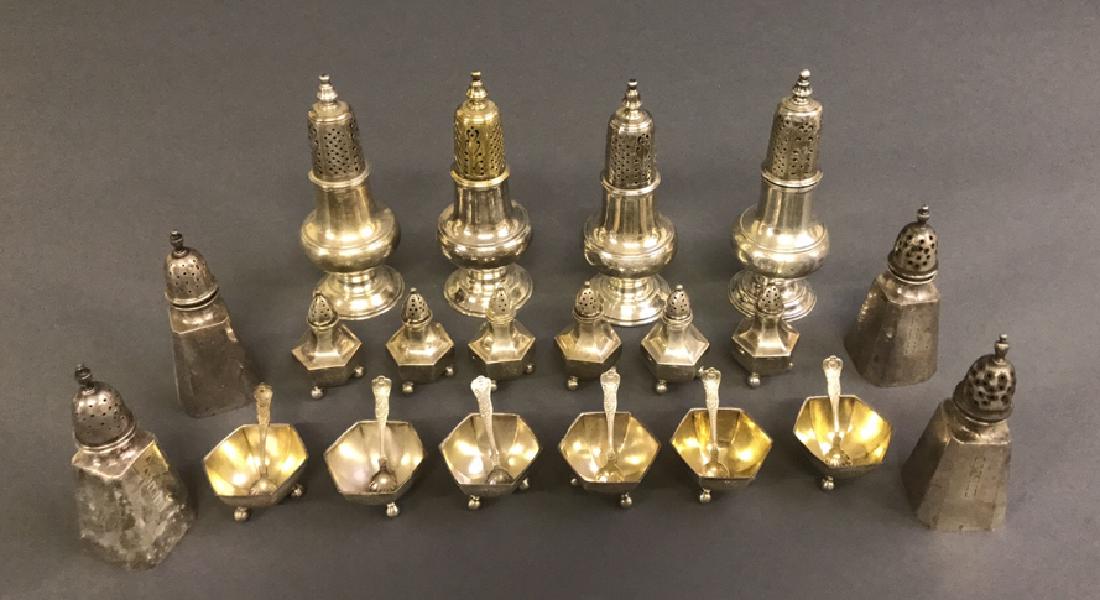 Sterling Silver Salts, Spoons, Pepper Shakers