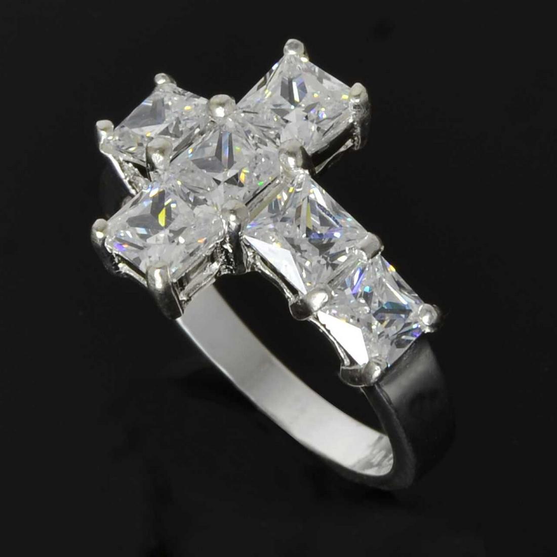 Sterling Silver Sideways CZ Cross Ring SZ 7