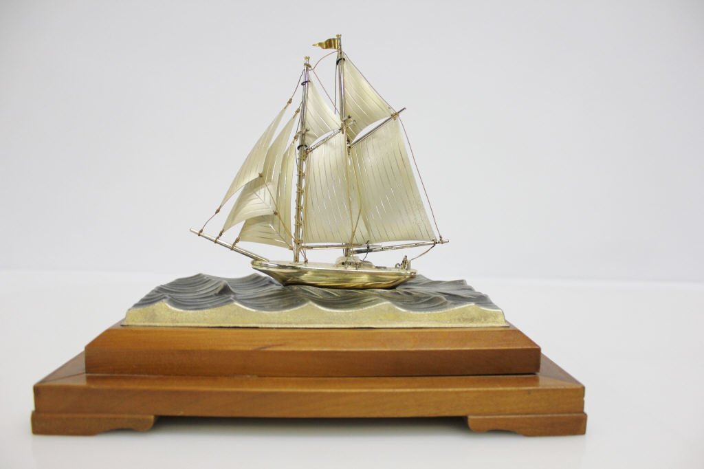 Model of a Two-Masted Schooner Yacht with Dark Blue Hull and White Cloth SailsLodestar Auctions4.7(444)$65(1 bid)