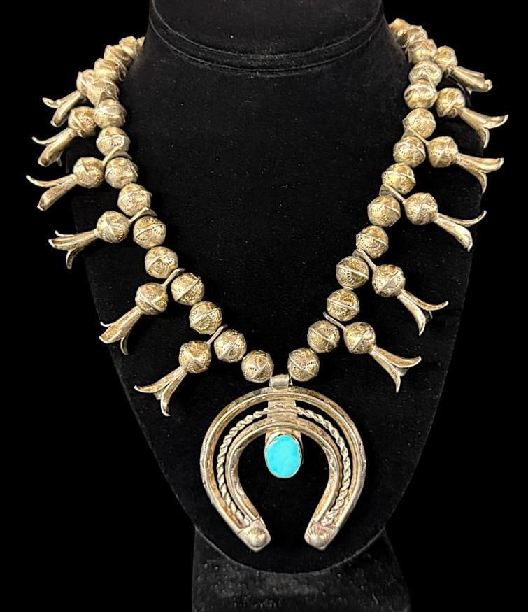 Old Pawn Navajo Squash Blossom Necklace Kingman Turquoise Necklace Sterling SilverSOUTHWESTERN STYLE GALLERY4.6(159)$1,300Mar 08, 2026