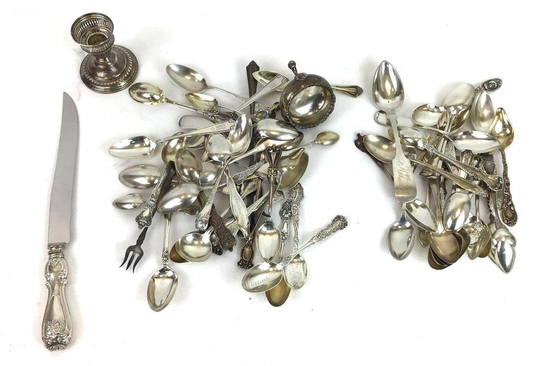 Lot of silver cutlery113 Lots AwayLot of Silverplate Serving PiecesFeb 12, 2026Lot of Silverplate Souvenir SpoonsFeb 12, 2026Estate lot STERLING SILVER including large fish knife, other serving utensils, souvenir spoons,4 days LeftFRANCIS HIGGINS STERLING SILVER UTENSILS LOT OF 6Feb 15, 2026Assorted Lot of English Sterling Silver Flatware and Utensils4 days LeftAssorted Lot of Austro-Hungarian .800 Silver Flatware and Serving Pieces4 days LeftEstate GORHAM & REED & BARTON Sterling Silver flatware ( very fancy similar patterns ), lot to4 days LeftGroup of Assorted Sterling Silver Flatware3 days LeftGroup of Silver Serving Spoons and Ladles4 days LeftGroup of Assorted Silver Plated Serving Pieces3 days LeftGorham Sterling Silver Serving Fork, Sterling Serving Spoon + Others 5.26 t oz 9 PCSFeb 19, 2026English Sterling, Coin and European Silver Flatware AssortmentFeb 24, 2026Group of Assorted Sterling Silver Forks and Spoons3 days LeftAssorted Vintage Sterling Silver Spoons - 20.7oz4 days LeftGroup of Sterling Silver Flatware2 days Left